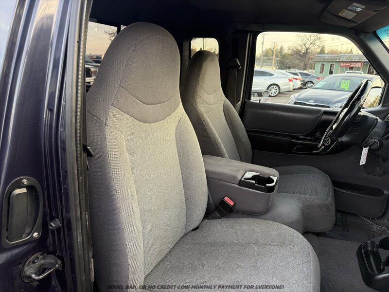 2002 Ford Ranger XLT — Black Clearcoat exterior with Dark Graphite cloth interior. Powered by the factory 4.0L V6 (207 hp / 238 ft-lbs). Factory-equipped XLT features include air conditioning, power windows and door locks, remote keyless entry, cruise control and tilt steering, AM/FM stereo with CD player, comfortable cloth seats with center console, dual front airbags, rear step bumper and a durable pickup bed with tie-downs. This Ranger has excellent overall condition, great mileage under 160,000 m2002 Ford Ranger XLT — Black Clearcoat exterior with Dark Graphite cloth interior. Powered by the factory 4.0L V6 (207 hp / 238 ft-lbs). Factory-equipped XLT features include air conditioning, power windows and door locks, remote keyless entry, cruise control and tilt steering, AM/FM stereo with CD player, comfortable cloth seats with center console, dual front airbags, rear step bumper and a durable pickup bed with tie-downs. This Ranger has excellent overall condition, great mileage under 160,000 miles (averaging less than 7,000 miles/year) and returns about 14 MPG city / 18 MPG highway.