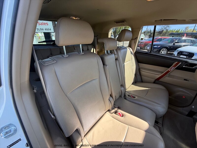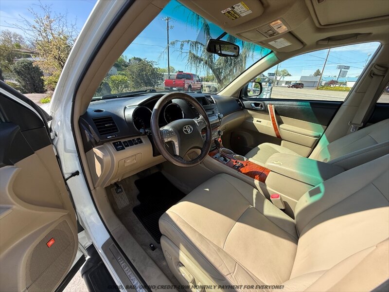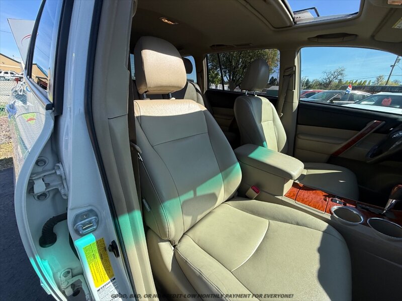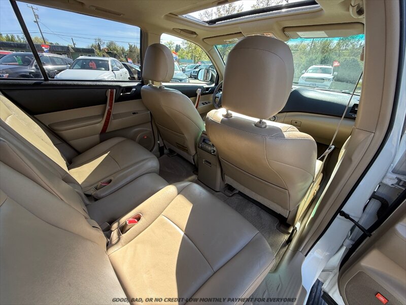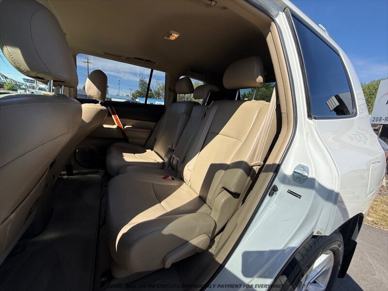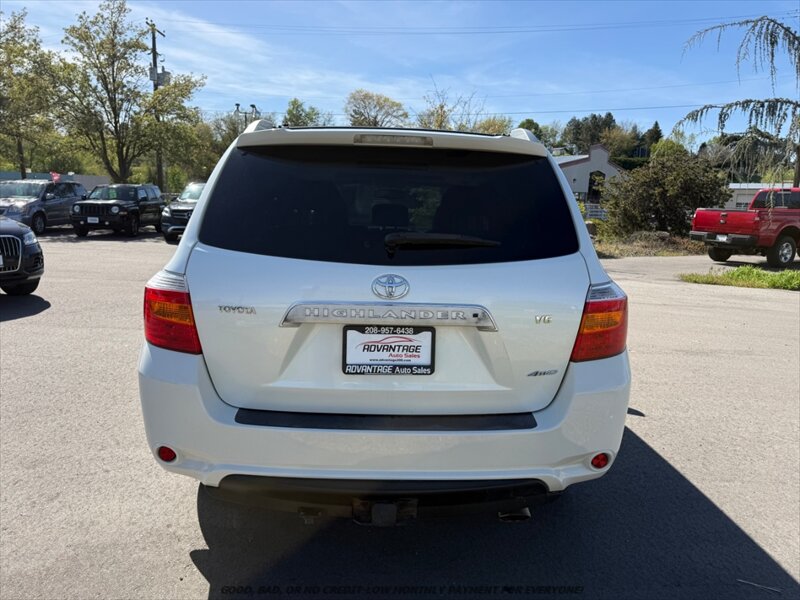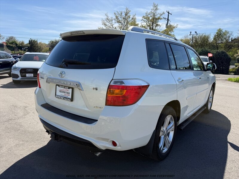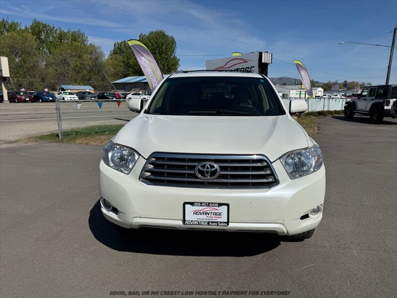 2008 Toyota Highlander Limited — 3.5L V6 (270 hp, 248 ft-lbs) with smooth 5-speed automatic. Factory-equipped with Sand Beige leather seating (up to 7 passengers), heated power front seats, power moonroof, dual-zone automatic climate control, cruise control, steering-wheel audio controls, premium audio with CD/aux input, power windows/locks, alloy wheels, roof rails and privacy glass. Full safety suite includes ABS, traction and stability control, front-seat side airbags and side-curtain airbags. Blizzard Pearl exterior, under 130,000 miles (averaging <7,000 miles/year), excellent overall condition, and EPA-rated about 17 MPG city / 23 MPG highway — a comfortable, well-maintained SUV.