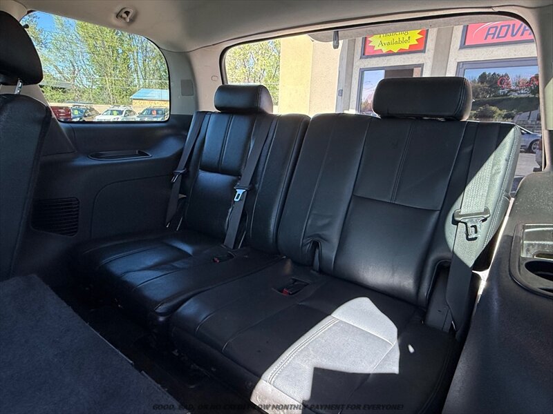 2009 Chevrolet Tahoe LT — 5.3L V8. This clean, well-maintained SUV is in excellent overall condition with under 165,000 miles (averaging less than 10,000 miles/year). The LT trim comes with a host of factory features: a strong 5.3L V8 engine, power windows and locks, remote keyless entry, cruise control, steering-wheel audio controls, AM/FM/CD audio with auxiliary input, tri-zone climate control and rear vents, comfortable 3rd-row seating (seating for up to 7–8), alloy wheels and towing capability with factory tow package. Safety and chassis features include ABS brakes, electronic stability control (StabiliTrak), front-impact and side-curtain airbags, and available OnStar. A great blend of space, utility, and comfort.