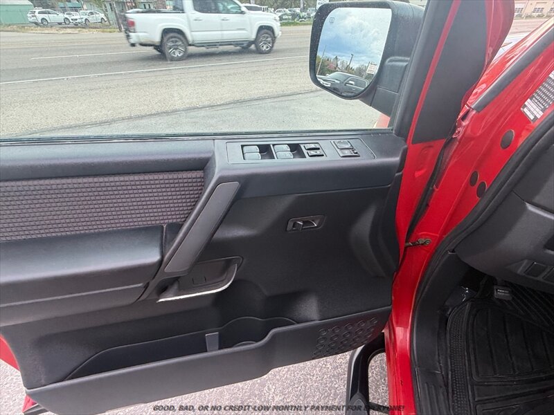 2010 Nissan Titan SE – Exterior rojo brillante con interior de tela negro y muy cómodo. El SE incluye de fábrica un motor V8 con transmisión automática, ventanas y seguros eléctricos con entrada remota, aire acondicionado, control de crucero, columna de dirección inclinable, controles de audio en el volante y estéreo AM/FM/CD con entrada auxiliar. Las características de seguridad y conveniencia suelen incluir frenos ABS, bolsas de aire frontales y laterales, control de estabilidad/tracción, llantas de aleación, faros antiniebla y preparación para remolque con receptor de enganche. Excelente condición general, menos de 153,000 millas (promedio menor a 9,000 millas/año).