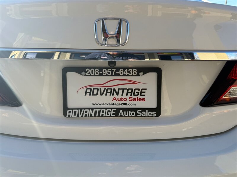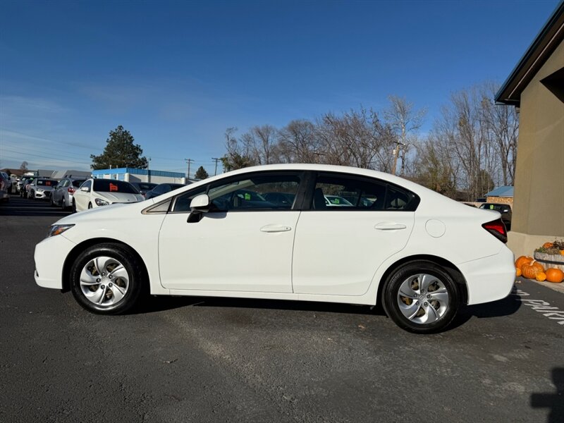 2013 Honda Civic LX — Taffeta White exterior with Beige cloth interior. Powered by a 1.8L I4 (140 hp, 128 lb-ft), this Civic returns about 28 MPG city / 39 MPG highway. Factory-standard features include air conditioning, cruise control, power windows and door locks with remote keyless entry, tilt steering wheel, 60/40 split-folding rear seat, USB audio interface and Bluetooth hands-free, AM/FM/CD audio, and 15" wheels with covers. Safety gear includes anti-lock brakes (ABS), Vehicle Stability Assist (VSA) with traction control, and front/side and side-curtain airbags. This vehicle is in excellent overall condition.