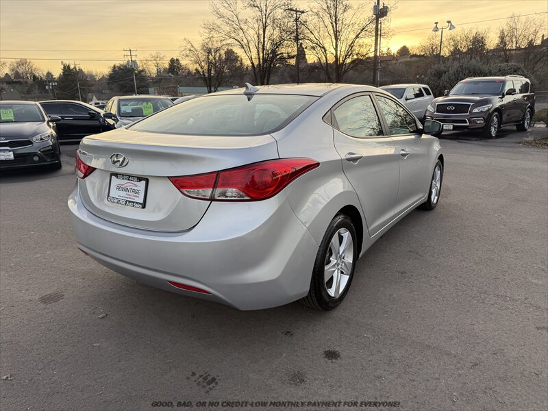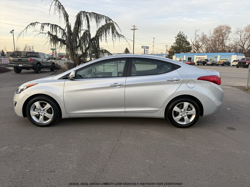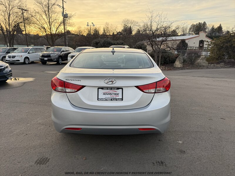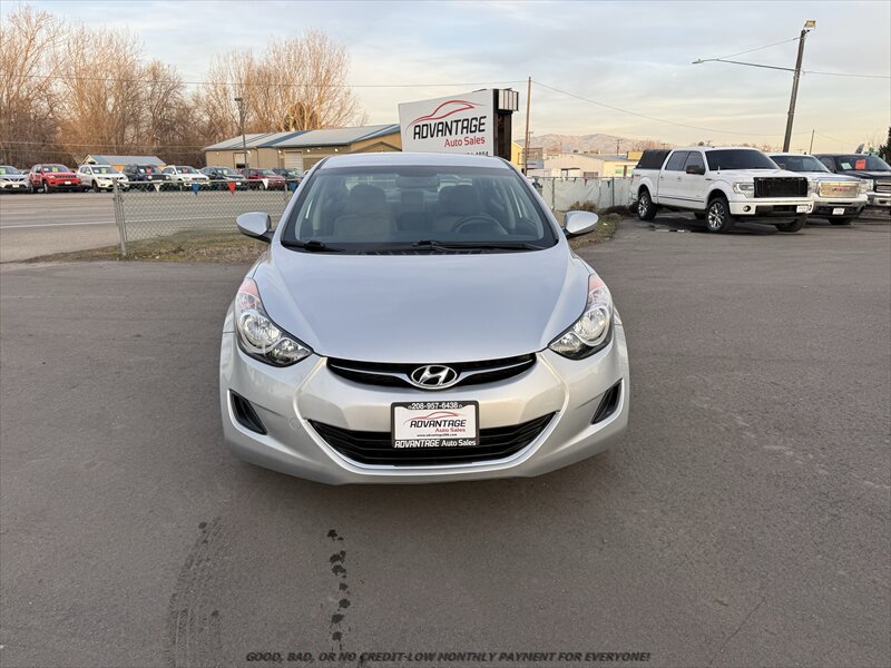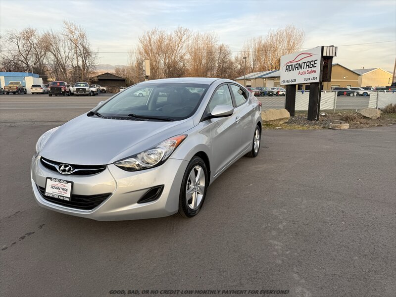 urtain airbags, tire pressure monitoring and LATCH anchors; comfort and convenience items like air conditioning, power windows and locks, remote keyless entry, cruise control, tilt steering, steering-wheel audio controls, 60/40 split-folding rear seat and ample cupholders; and an AM/FM/CD/MP3 stereo with AUX/USB inputs and Bluetooth hands-free. Excellent overall condition, under 45,000 miles (avg. <4,000 miles/year). EPA rating about 28 MPG city / 38 MPG highway. 2013 Hyundai ELANTRA GLS — exterior Harbor Gray Metallic con interior en tela gris. Equipada de fábrica con un motor 1.8L I4 (148 hp, 131 ft-lbs) acoplado a una transmisión de 6 velocidades y tracción delantera. Las características de fábrica incluyen ABS, control electrónico de estabilidad y tracción, airbags frontales y laterales con cortina, monitor de presión de neumáticos y anclajes LATCH; comodidad y conveniencia como aire acondicionado, elevalunas y seguros eléctricos, entrada remota sin llave, control de crucero, columna de dirección inclinable, controles de audio en el volante, asiento trasero abatible 60/40 y portavasos; además de un equipo de sonido AM/FM/CD/MP3 con entradas AUX/USB y Bluetooth manos libres. Vehículo en excelente estado, menos de 45,000 millas (promedio <4,000 millas/año). Consumo aproximado 28 MPG ciudad / 38 MPG carretera. We have financing for everyone-Good, bad, or no credit! Competive low rates! Challenged Credit? Ask about our ADVANCE PROGRAM Advantage Auto Sales LLC 4840 W Chinden Blvd 4843 W Chinden Blvd GARDEN CITY, ID 83714 (208) 957-6438 Two Convenient locations right across from each other!