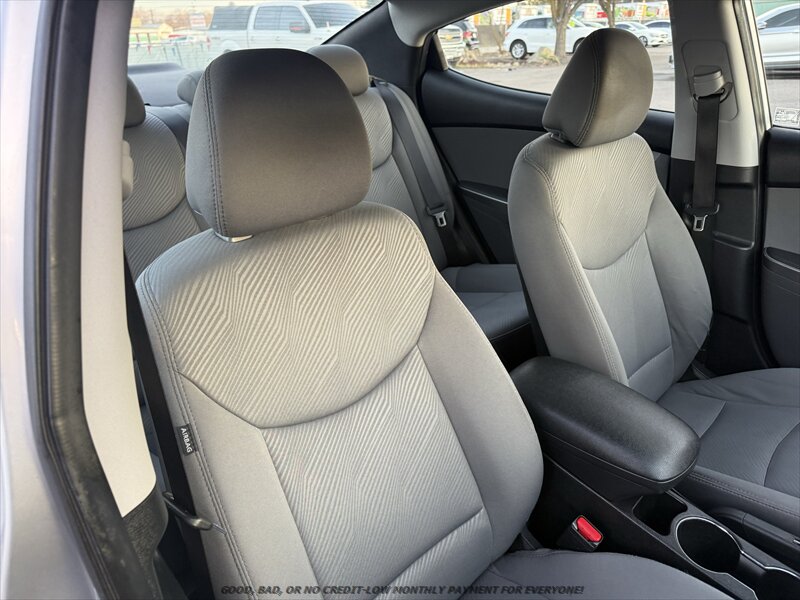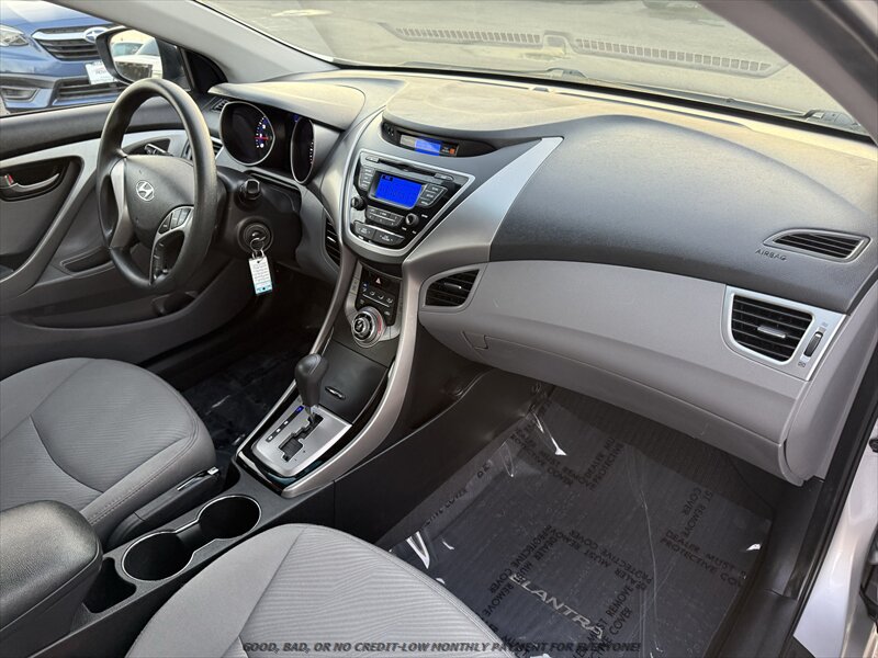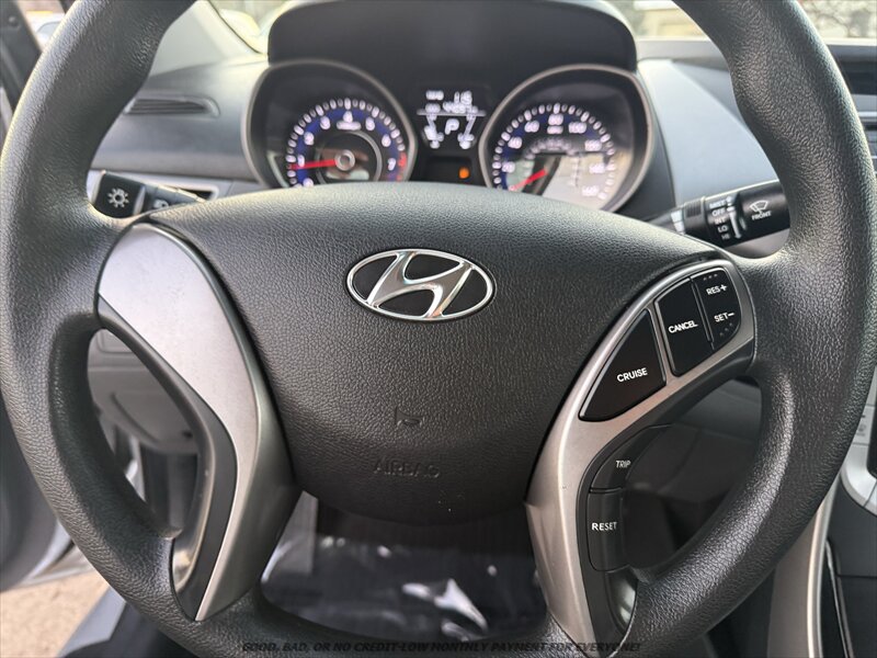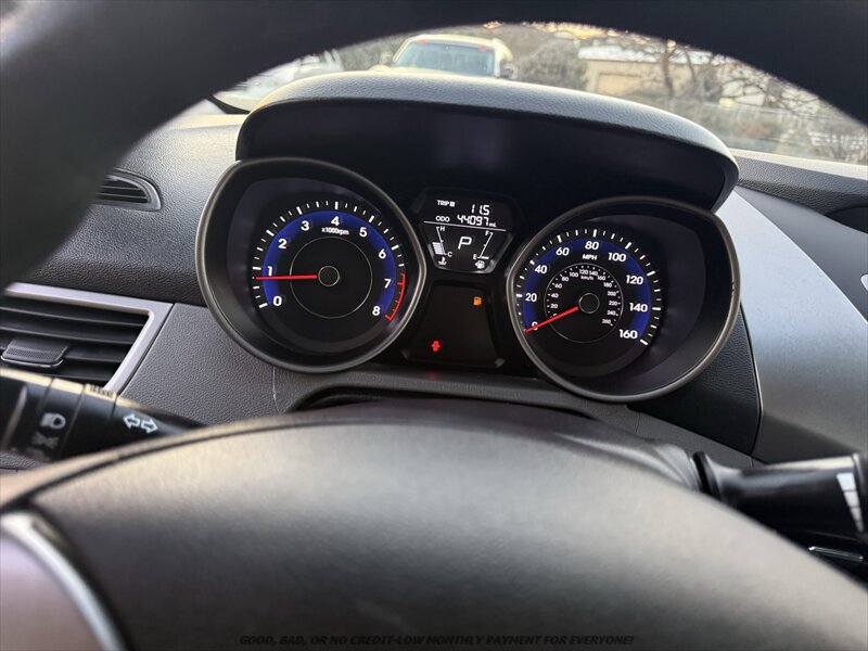 2013 Hyundai ELANTRA GLS — Harbor Gray Metallic exterior with Gray cloth interior. Powered by a factory 1.8L I4 (148 hp, 131 ft-lbs) paired to a smooth 6-speed transmission and front-wheel drive. Factory standard features include ABS, electronic stability & traction control, front and side airbags with full-length c2013 Hyundai ELANTRA GLS — Harbor Gray Metallic exterior with Gray cloth interior. Powered by a factory 1.8L I4 (148 hp, 131 ft-lbs) paired to a smooth 6-speed transmission and front-wheel drive. Factory standard features include ABS, electronic stability & traction control, front and side airbags with full-length curtain airbags, tire pressure monitoring and LATCH anchors; comfort and convenience items like air conditioning, power windows and locks, remote keyless entry, cruise control, tilt steering, steering-wheel audio controls, 60/40 split-folding rear seat and ample cupholders; and an AM/FM/CD/MP3 stereo with AUX/USB inputs and Bluetooth hands-free. Excellent overall condition, under 45,000 miles (avg. <4,000 miles/year). EPA rating about 28 MPG city / 38 MPG highway.