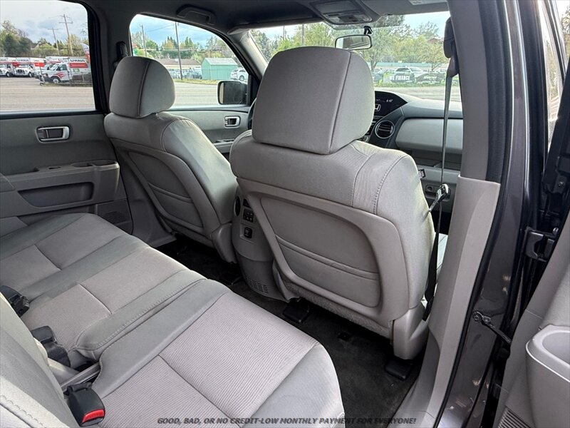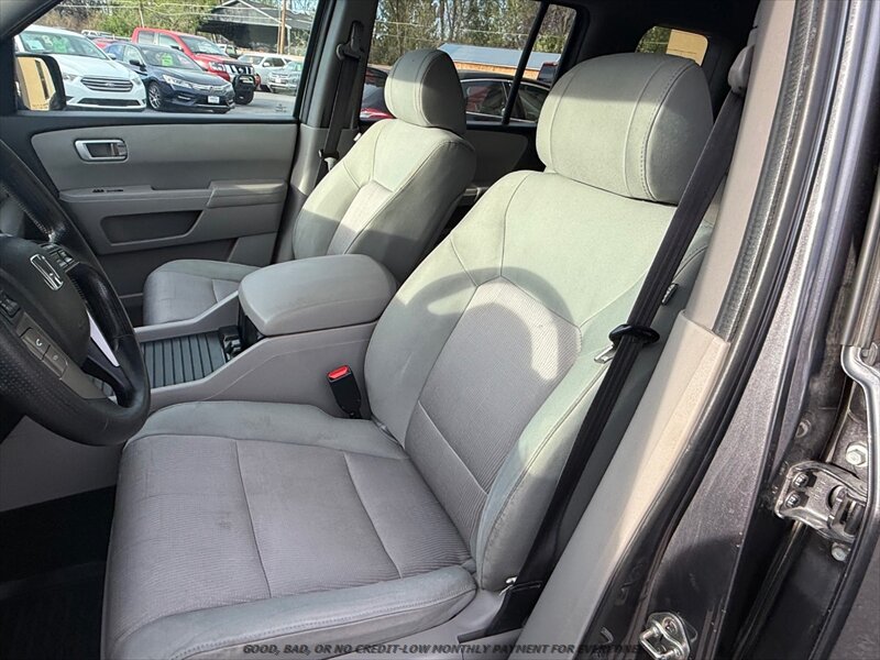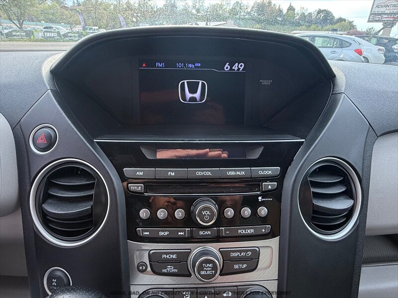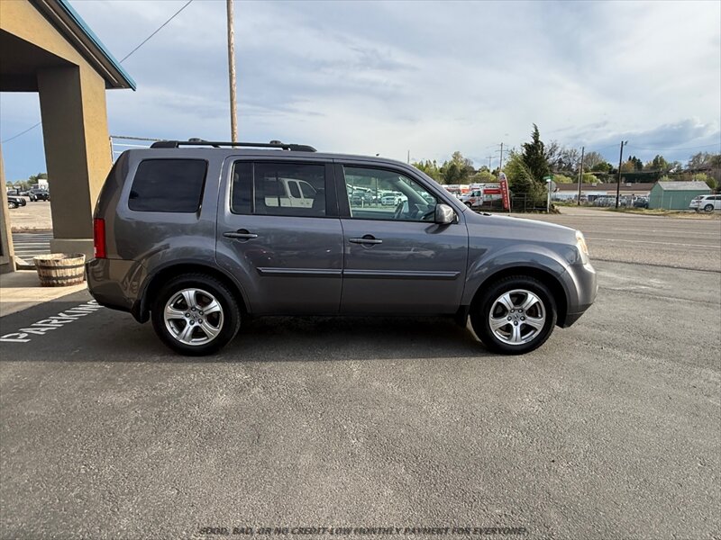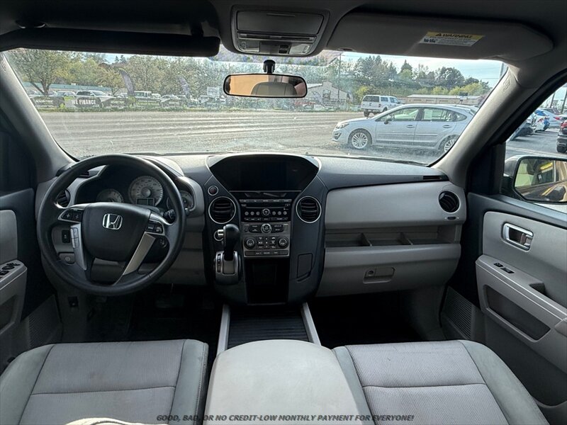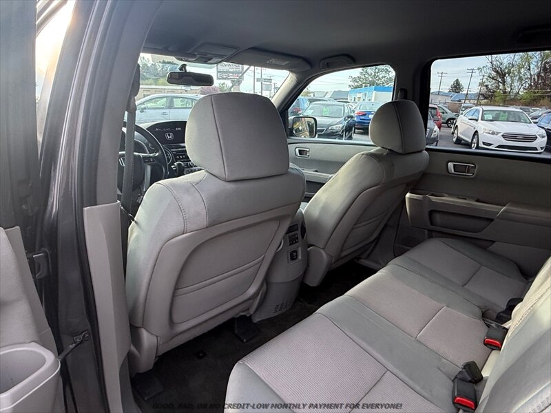 2014 Honda Pilot EX — Obsidian Blue Pearl exterior with Gray cloth interior. Powered by a 3.5L V6 (250 hp / 253 ft-lbs), this well-maintained Pilot gets about 17 MPG city and 24 MPG highway and is in excellent overall condition. Factory features include three-row seating for up to 8 passengers with fold-flat third row, cloth upholstery, power moonroof, power windows and locks, cruise control, steering-wheel audio controls, Bluetooth hands-free phone and audio streaming, USB/AUX inputs with a 6-speaker audio system, tri-zone automatic climate control, multi-angle rearview camera, 18-inch alloy wheels, roof rails, and a full complement of safety systems (ABS, stability and traction control, front and side airbags with side curtain airbags for all three rows).