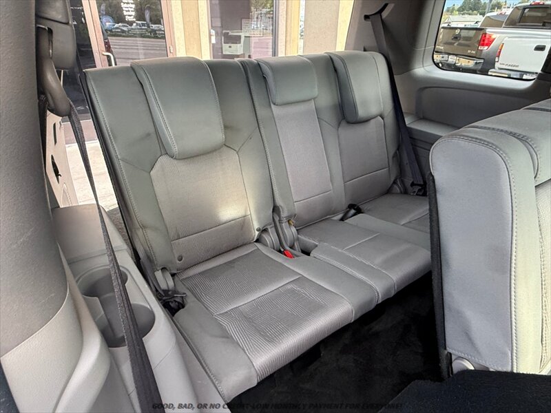 2014 Honda Pilot EX — Exterior Obsidian Blue Pearl con interior en tela gris. Con motor 3.5L V6 (250 hp / 253 lb-ft), este Pilot, en excelente estado, rinde aproximadamente 17 MPG en ciudad y 24 MPG en carretera. Entre las características de fábrica se incluyen tres filas de asientos para 8 pasajeros con la tercera fila abatible, tapicería de tela, techo solar eléctrico, ventanas y seguros eléctricos, control de crucero, controles de audio en el volante, Bluetooth manos libres y para audio, entradas USB/AUX con sistema de sonido de 6 bocinas, climatizador automático de tres zonas, cámara trasera multiángulo, rines de aleación de 18 pulgadas, barras en el techo y un paquete completo de seguridad (ABS, control de estabilidad y tracción, bolsas de aire frontales, laterales y de cortina para las tres filas).