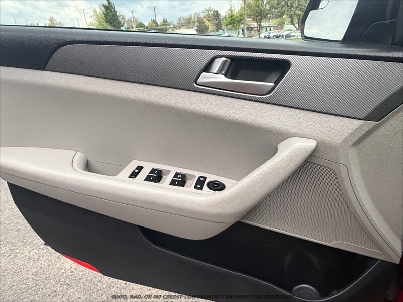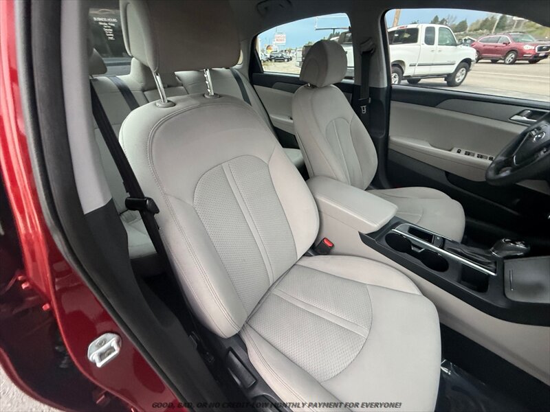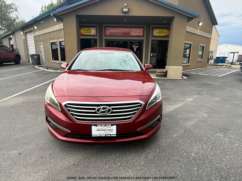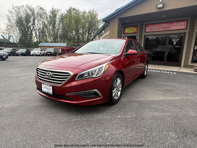 2015 Hyundai Sonata SE — Venetian Red exterior with Gray cloth interior. Powered by a factory 2.4L I4 (185 hp, 178 ft-lbs) paired with a smooth automatic transmission; fuel economy is about 25 MPG city / 37 MPG highway. Vehicle is in excellent overall condition.