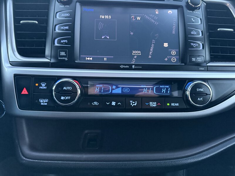 2015 Toyota Highlander Limited Platinum — exterior Silver Sky Metallic con interior Black. Equipado con un motor 3.5L V6 (270 hp / 248 lb-ft), este SUV de gama alta ofrece espacio cómodo para hasta siete pasajeros, gran comportamiento en carretera y un consumo EPA de 18 MPG en ciudad / 24 MPG en carretera. Las características de fábrica incluyen asientos delanteros forrados en cuero, calefactables y ventilados, asiento del conductor eléctrico con memoria, techo solar eléctrico, portón trasero eléctrico manos libres, climatizador automático de tres zonas, pantalla Entune con navegación, Bluetooth/USB/AUX, sistema de audio premium, cámara de marcha atrás, monitor de punto ciego con alerta de tráfico cruzado, sensores de estacionamiento, acceso sin llave con arranque por botón, barras de techo, llantas de aleación y un completo paquete de seguridad (ABS, control de tracción y estabilidad, múltiples airbags). El Paquete Platinum añade mejoras exclusivas de confort y tecnología. El vehículo se encuentra en excelente condición general — listo para disfrutar.