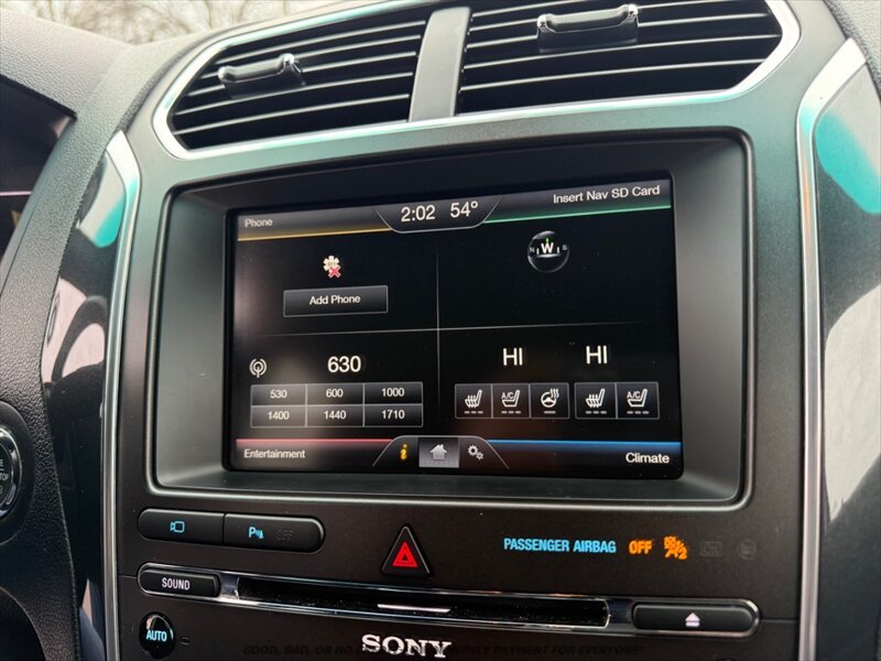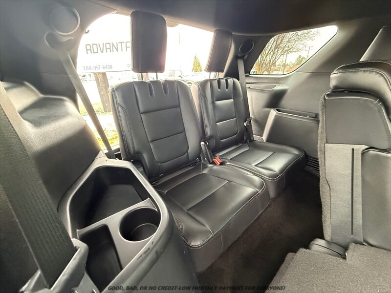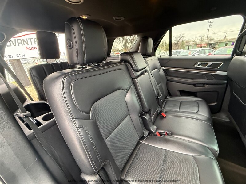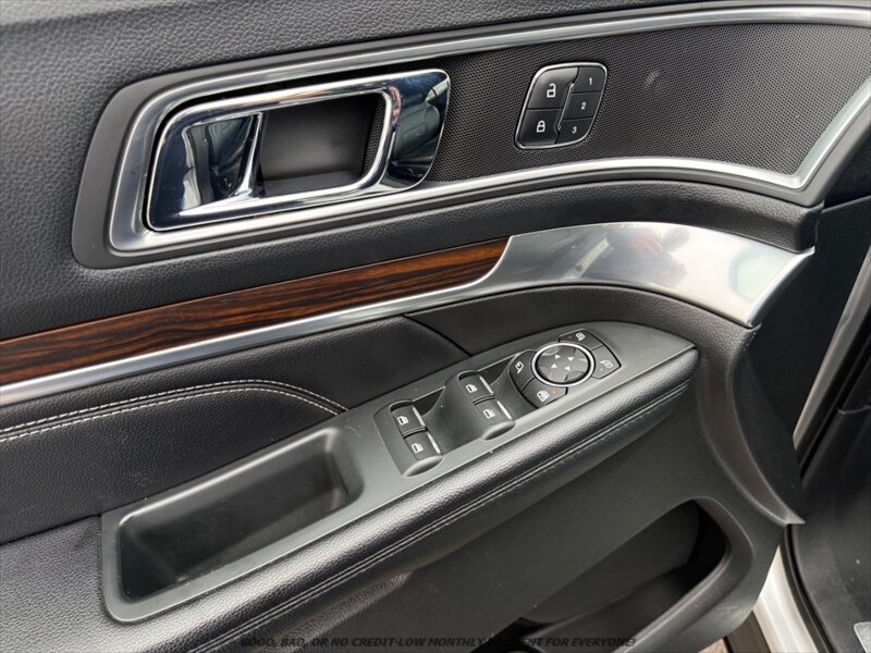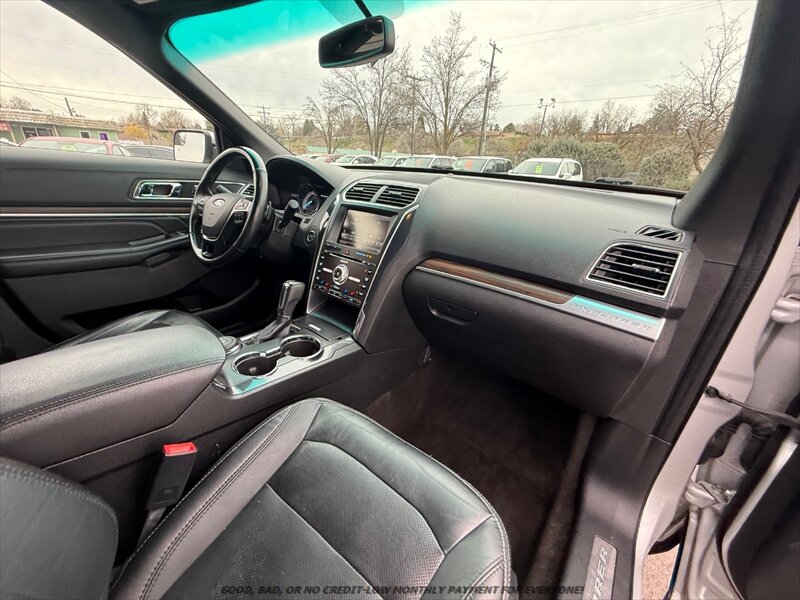 2016 Ford Explorer Limited in White Platinum Metallic Tri-Coat with Ebony Black leather, powered by a 3.5L V6 (290 hp, 255 lb-ft). Excellent overall condition with under 77,000 miles (averaging less than 7,000 miles/year) and EPA-rated 16 MPG city / 23 MPG highway. Factory-equipped features include a 6-speed automatic transmission (FWD standard, AWD available), three-row seating for seven with power-folding third row, leather-trimmed heated front seats with power adjustments and driver memory, dual-zone automatic climate control, power liftgate and available panoramic moonroof, SYNC infotainment with Bluetooth, USB/AUX and steering-wheel controls (Sony premium audio and satellite radio typically available), rearview camera with rear parking sensors, ABS, traction and stability control, tire pressure monitoring and a full set of airbags. Ready for your next drive!