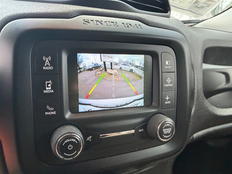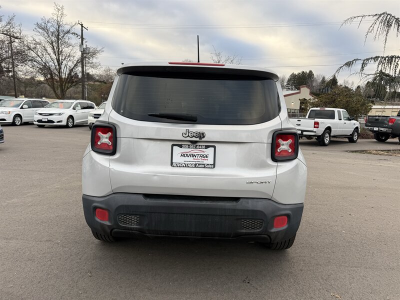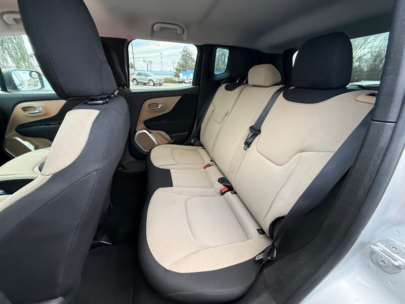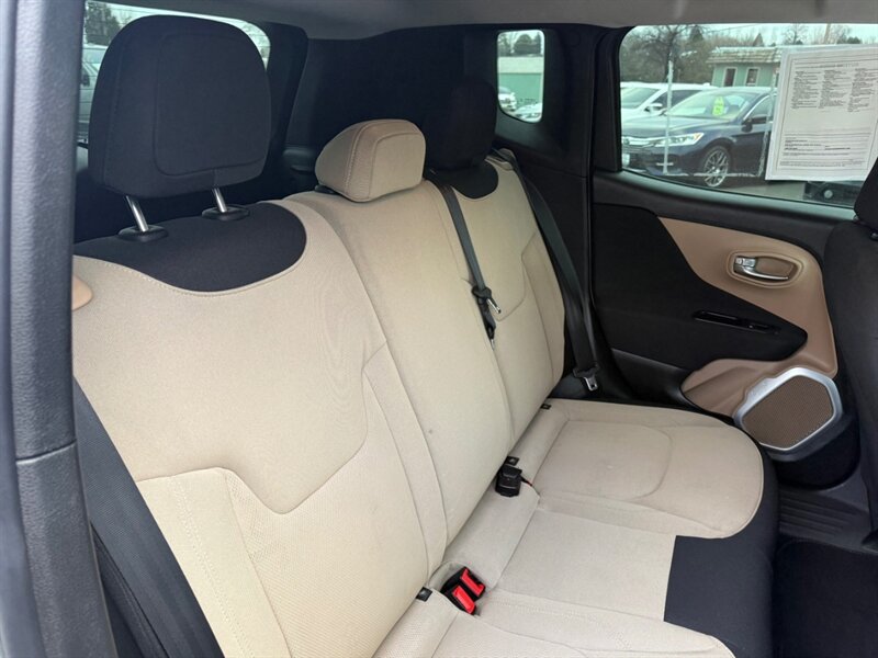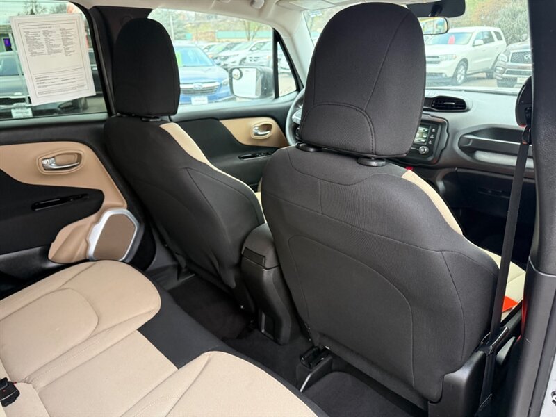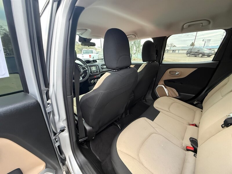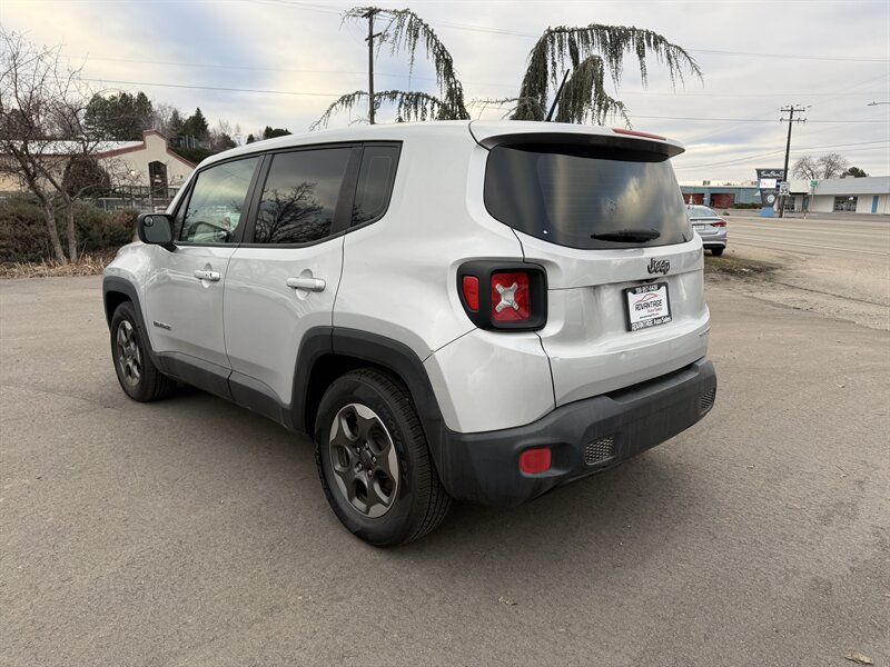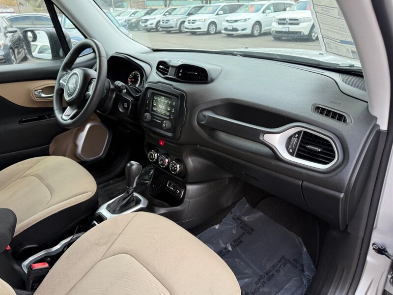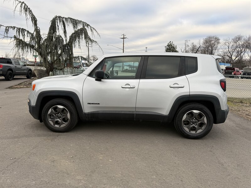 2016 Jeep Renegade Sport powered by the Tigershark 2.4L Flex Fuel I4 (180 hp, 175 lb-ft). Glacier Metallic exterior with a Tan interior. Well cared for with under 96,000 miles (averaging less than 9,000 miles/year) and in excellent overall condition.