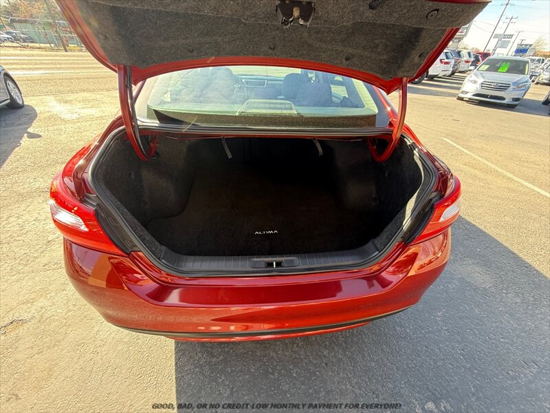 2016 Nissan Altima 2.5 SR in Cayenne Red with Black cloth interior and blue contrast stitching. Powered by a 2.5L I4 (182 hp, 180 lb-ft) with Nissan’s Xtronic CVT and Sport mode with paddle shifters — excellent overall condition with under 64,000 miles (averaging <6,000 miles/year) and great fuel economy: 26 MPG city / 37 MPG highway.