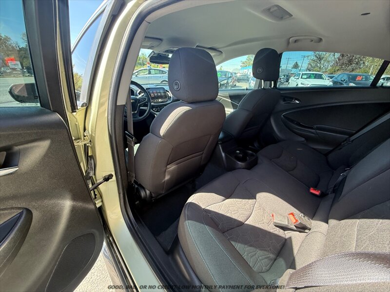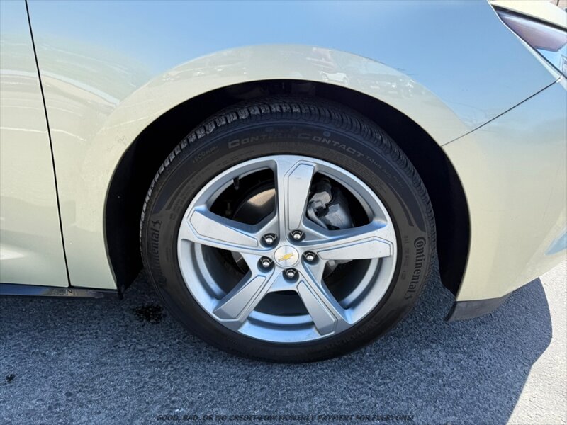 2017 Chevrolet Volt LT — Citron Green Metallic exterior with Light Ash/Dark Ash cloth interior. Range-Extended Electric powertrain delivering 149 hp and 294 ft. lbs., giving efficient electric driving with a gasoline generator for extended range. Factory features include a 7" Chevrolet MyLink touchscreen with Apple CarPlay/Android Auto and USB, Bluetooth, steering-wheel audio controls, keyless entry, power windows/locks, automatic climate control, rearview camera, ABS with traction/stability control, multiple airbags, tire pressure monitoring, alloy wheels, LED daytime running lights, and OnStar with available 4G LTE Wi-Fi. Under 72,000 miles (averaging less than 8,000 miles/year) and in excellent overall condition — ready to enjoy!