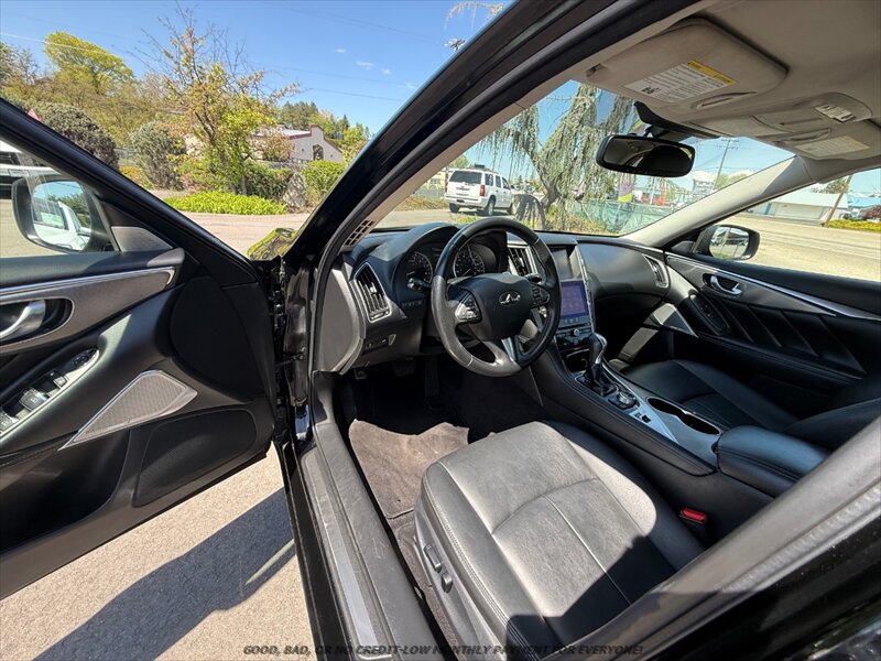 This 2017 INFINITI Q50 3.0T Premium is the perfect balance of performance and refinement. Finished in Black Obsidian with a premium Graphite leather interior, this vehicle delivers a clean, sleek look with a strong road presence.