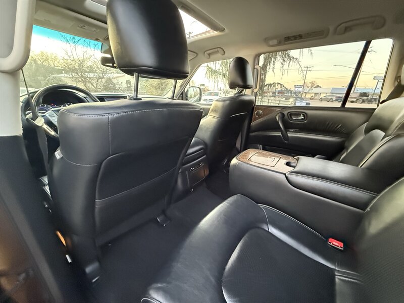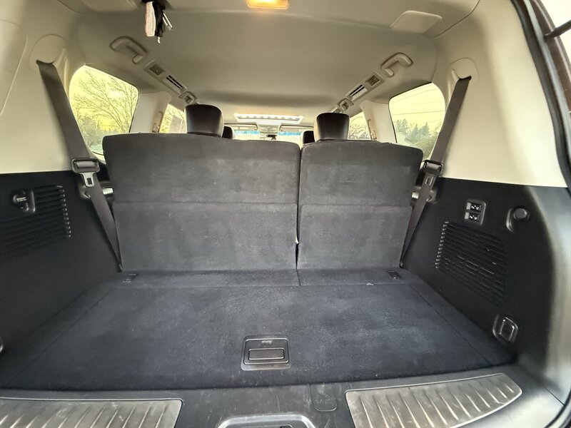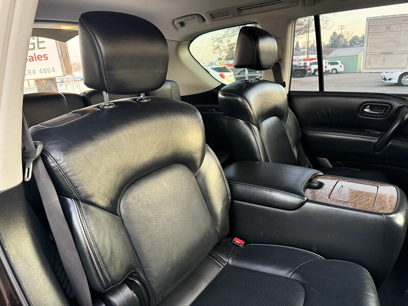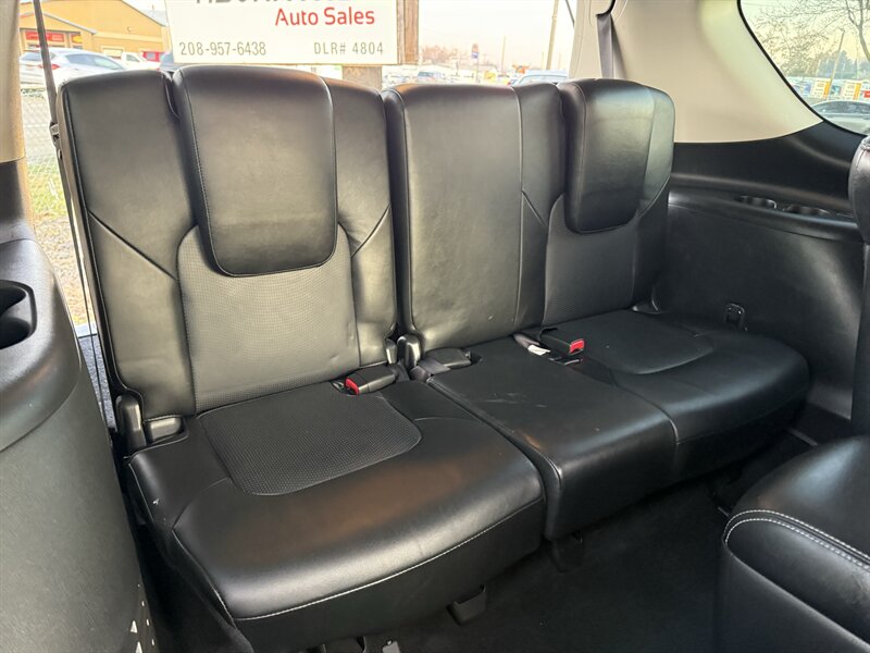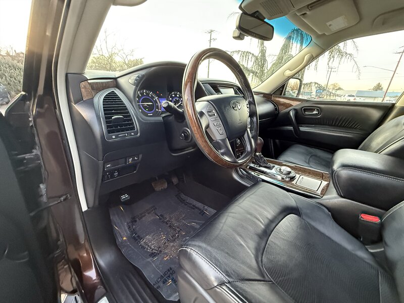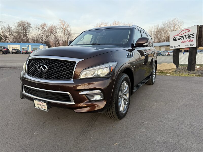 Turn heads in Dakar Bronze with the commanding presence of this 2017 INFINITI QX80 Limited AWD — a full-size luxury SUV built around a potent 5.6L V8 that produces 400 hp and 413 ft-lbs of torque. Backed by a smooth 7-speed automatic transmission and full-time all-wheel drive, this QX80 delivers strong, composed performance whether you’re towing, cruising the highway, or running errands around town. Fuel economy is rated at 13 MPG city and 19 MPG highway. The exterior’s warm Dakar Bronze paint pairs beautifully with the elegant Black leather interior, and this example is in excellent overall condition.