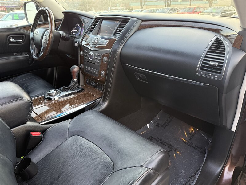 This 2017 QX80 Limited combines true V8 power and full-size capability with luxury-level comforts and thoughtful factory technology. The Dakar Bronze exterior and Black leather interior give it a sophisticated, versatile look — and with its excellent overall condition, it’s ready to provide premium driving experiences for years to come. Contact us to schedule a viewing or test drive and see all of these factory features in person.