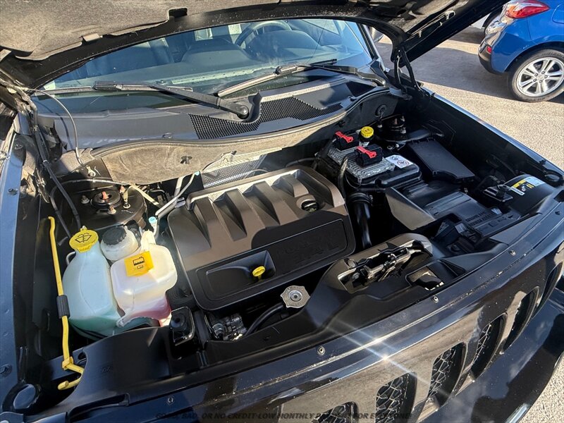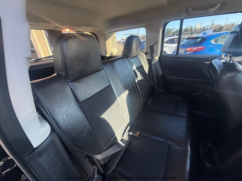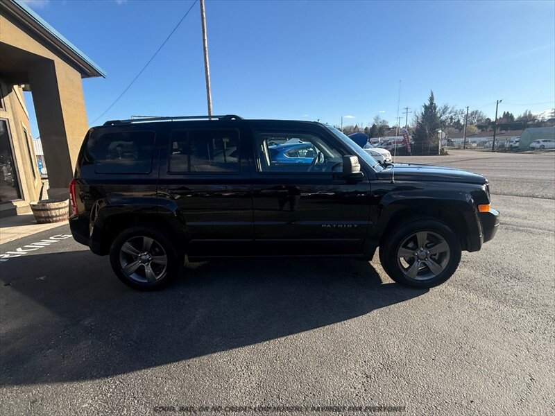 2017 Jeep Patriot Sport SE — Black Clear Coat exterior with Dark Slate Gray cloth interior, powered by a 2.4L I4 engine producing 172 hp and 165 ft-lbs. Great mileage (under 78,000 miles, averaging less than 8,000 miles/year) and excellent overall condition. EPA-rated about 20 MPG city and 25 MPG highway. Factory-equipped with comfortable cloth seating for five, split-folding rear seats for added cargo flexibility, air conditioning, power windows and door locks with remote keyless entry, cruise control and tilt steering, roof rails and a practical cargo area, AM/FM stereo with CD/aux/USB and Bluetooth hands-free/audio plus steering-wheel audio controls, all-season tires on factory wheels, and comprehensive safety gear including anti-lock brakes (ABS), electronic stability and traction control, front airbags plus side and curtain airbags, tire pressure monitoring system, and LATCH child-seat anchors.