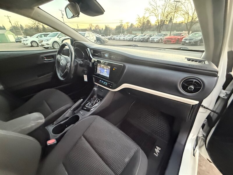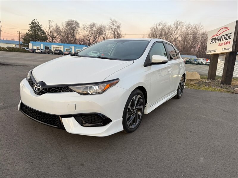 2017 Toyota Corolla iM — Blizzard Pearl exterior with a Black interior. Powered by a 1.8L I4 producing 137 hp and 126 ft-lbs of torque, this well-maintained hatchback has under 92,000 miles (averaging less than 10,000 miles/year) and returns about 27 MPG city / 35 MPG highway. Factory equipment includes air conditioning, power windows and locks, remote keyless entry, cruise control, Bluetooth hands-free phone and audio streaming, a touchscreen infotainment system with USB/Aux inputs, steering-wheel audio controls, cloth seats with 60/40 split-folding rear seat, alloy wheels, and a full suite of airbags and stability control. Excellent overall condition — clean, reliable, and ready to drive.