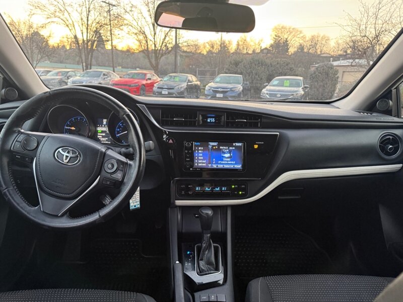 2017 Toyota Corolla iM — exterior en Blizzard Pearl y tapicería interior negra. Con motor 1.8L I4 de 137 hp y 126 ft-lbs de torque, este hatchback bien cuidado tiene menos de 92,000 millas (promedio inferior a 10,000 millas/año) y rinde aproximadamente 27 MPG en ciudad / 35 MPG en carretera. El equipamiento de fábrica incluye aire acondicionado, elevalunas y seguros eléctricos, cierre remoto, control de crucero, Bluetooth para llamadas y audio, sistema de infoentretenimiento con pantalla táctil y entradas USB/Aux, controles de audio en el volante, asientos de tela con respaldo trasero abatible 60/40, llantas de aleación y un paquete completo de airbags y control de estabilidad. Excelente condición general — limpio, confiable y listo para manejar.