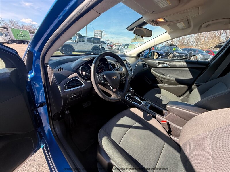 This 2018 Chevrolet Cruze LT Auto in Kinetic Blue Metallic with Dark Atmosphere/Medium Atmosphere cloth interior is powered by a 1.4L Turbo I4 (153 hp / 177 lb-ft), paired with a 6-speed automatic and front-wheel drive. It returns about 29 MPG city and 38 MPG highway and is in excellent overall condition.