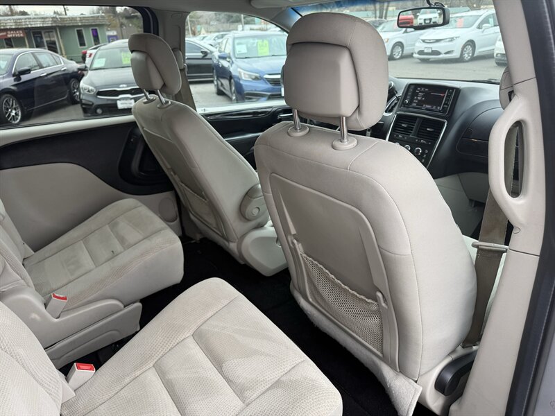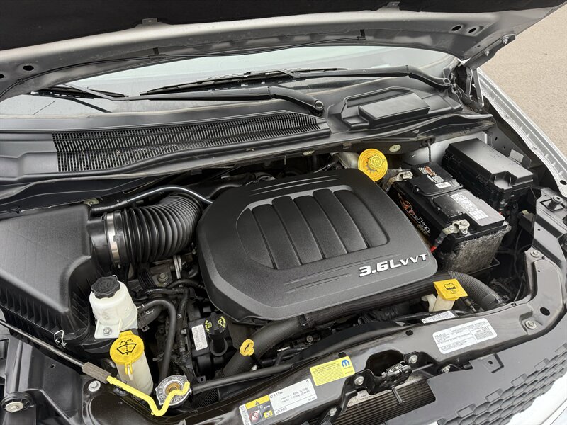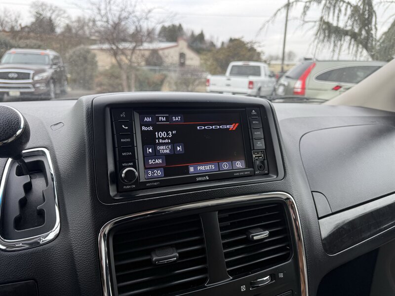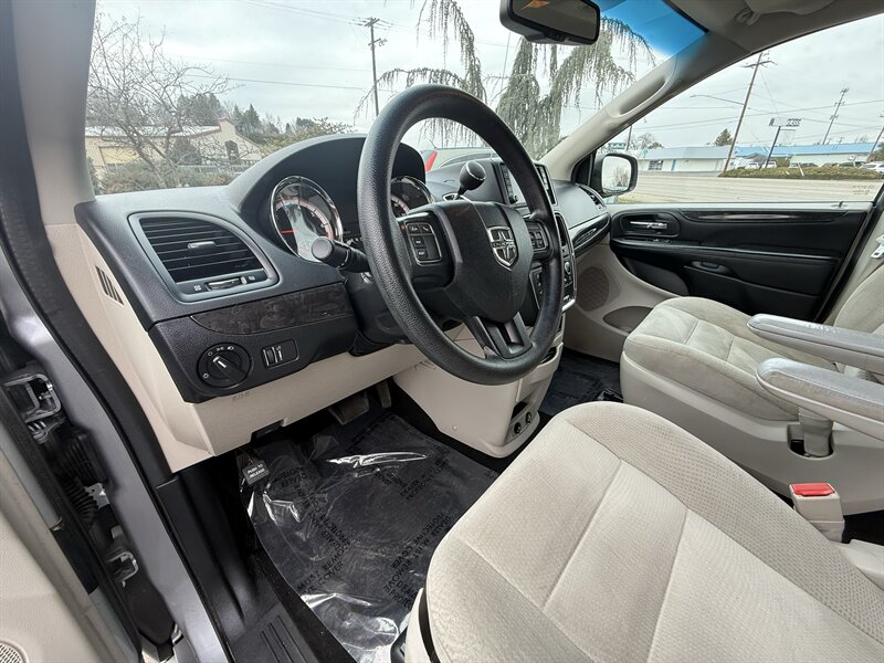 2018 Dodge Grand Caravan SE en Granite Pearl Coat con interior de tela Black/Light Graystone, impulsado por el motor Pentastar 3.6L FlexFuel V6 (283 hp, 260 lb-ft). Esta furgoneta, muy bien cuidada, está en excelente estado y lista para la familia. Las características de fábrica incluyen asientos Stow ’n Go para siete personas (las filas segunda y tercera se pliegan y se guardan en el piso), transmisión automática de 6 velocidades, tracción delantera, climatizador manual de tres zonas, elevalunas y seguros eléctricos, entrada sin llave, control de crucero, mandos de audio en el volante, Bluetooth manos libres con entradas USB/AUX (sistema Uconnect), cámara de reversa, ABS, control de estabilidad y múltiples airbags.