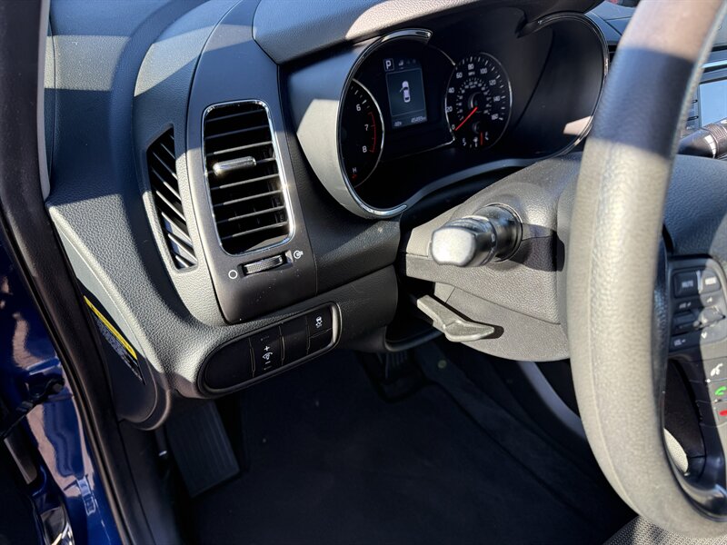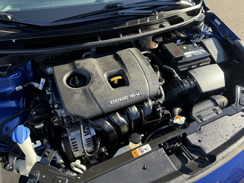 Kia Forte LX 2018 en Deep Sea Blue con interior en tela negra. Impulsado por el motor Nu 2.0L I4 (147 hp, 132 lb·ft), este Forte trae de fábrica comodidades y equipamiento práctico: asientos de tela con asiento trasero abatible 60/40, aire acondicionado manual, ventanas y seguros eléctricos, entrada remota sin llave, controles de audio en el volante y control de crucero. El sistema multimedia incluye Bluetooth para llamadas y audio, entradas USB/AUX y radio AM/FM. Las características de seguridad de fábrica incluyen ABS, control electrónico de estabilidad y tracción, múltiples airbags y monitorización de presión de llantas, además de cámara de reversa. Excelente estado general con menos de 46,000 millas (promediando menos de 6,000 millas/año). Consumo: 25 MPG ciudad / 34 MPG carretera.