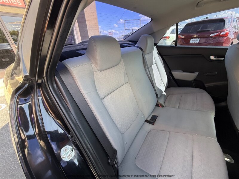 2018 Kia Rio LX — 1.6L I4 (130 hp, 119 ft-lbs). Exterior Aurora Black con interior en tela gris. Excelente estado general, menos de 29,000 millas (promedio <4,000 millas/año). Consumo: 28 MPG ciudad / 37 MPG carretera. Compacto confiable y de bajo kilometraje.