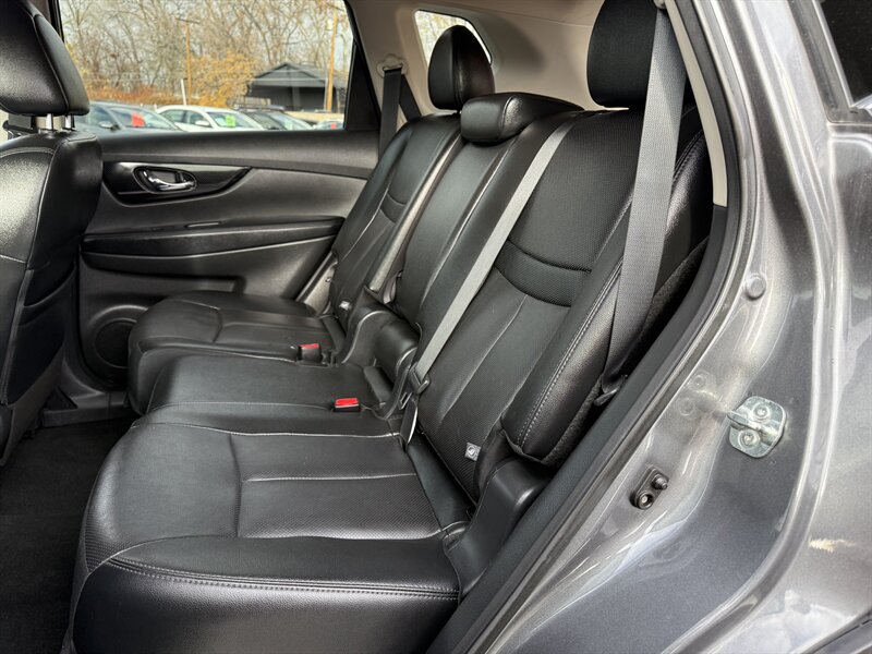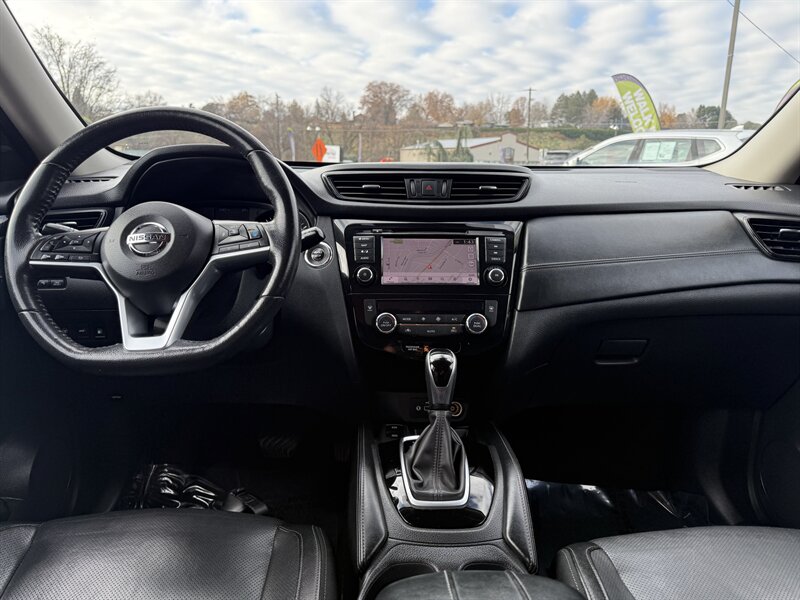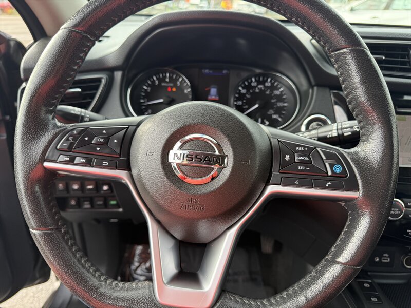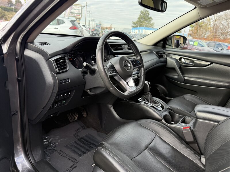 2019 Nissan Rogue SL — Gun Metallic exterior with Charcoal leather interior. Powered by a 2.5L I4 (170 hp, 175 ft-lb) with smooth CVT; EPA-rated 25 MPG city / 32 MPG highway. Factory features include leather-appointed heated front seats, power-adjustable driver’s seat, dual-zone automatic climate control, keyless entry and push-button start, power liftgate, touchscreen infotainment with Bluetooth, navigation and Bose premium audio, rearview camera, Blind Spot Warning, Rear Cross Traffic Alert, Forward Emergency Braking and Lane Departure Warning. This vehicle is in excellent overall condition — ready for a great drive!