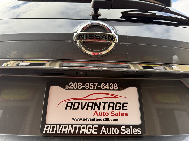 2019 Nissan Rogue SL — exterior Gun Metallic con interior de cuero Charcoal. Equipada con motor 2.5L I4 (170 hp, 175 ft-lb) y CVT; consumo EPA 25 MPG ciudad / 32 MPG carretera. Las características de fábrica incluyen asientos delanteros de cuero calefactados, asiento del conductor con ajuste eléctrico, climatizador automático bizona, entrada sin llave y arranque por botón, portón trasero con apertura eléctrica, sistema de infoentretenimiento con pantalla táctil, Bluetooth, navegación y audio Bose premium, cámara de reversa, Alerta de Punto Ciego, Alerta de Tráfico Cruzado Trasero, Frenado de Emergencia Frontal y Alerta de Cambio de Carril. El vehículo está en excelente estado general — ¡listo para disfrutar!